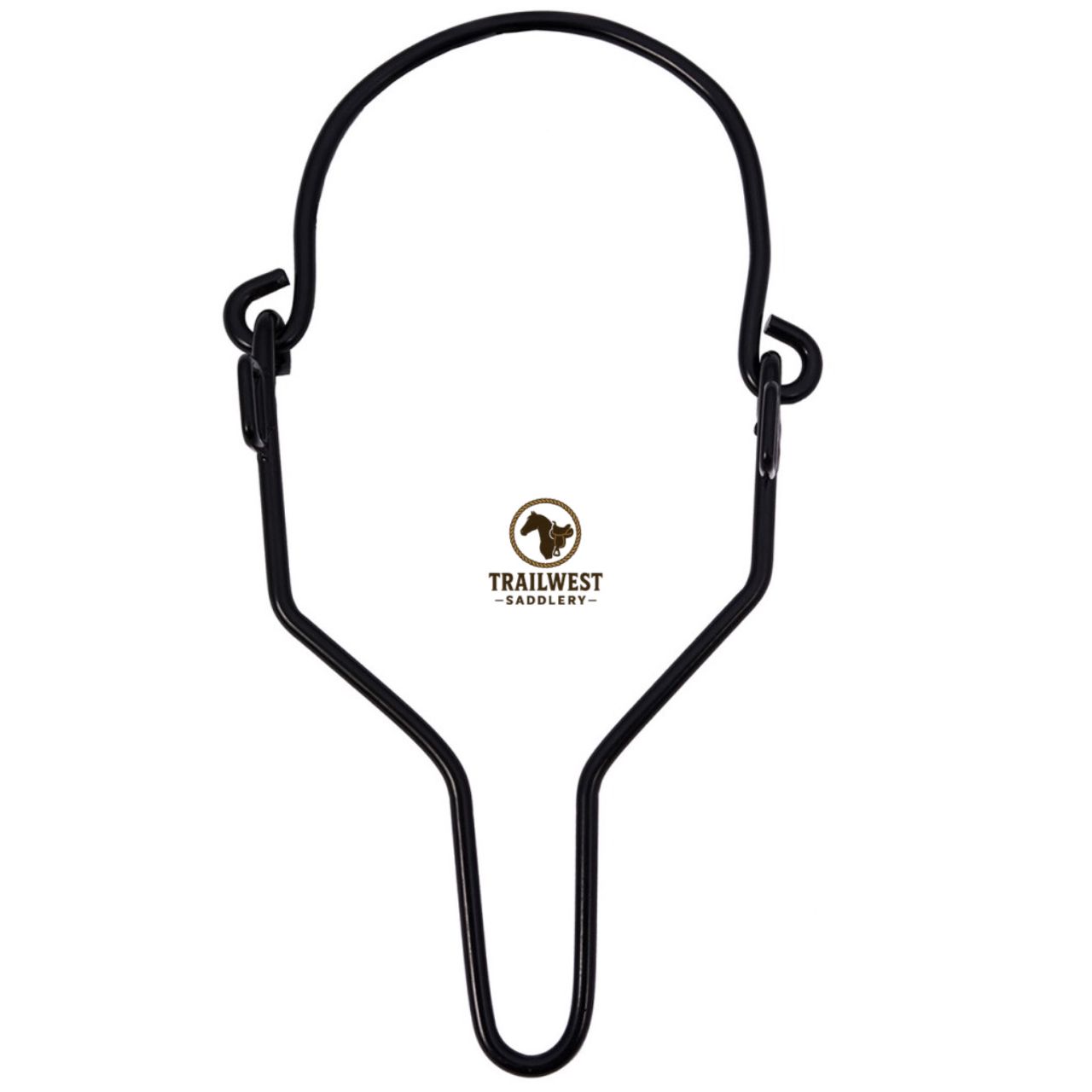 A mechanical bosal made of sturdy 1/4″ steel rod then painted with a durable black powder coating.