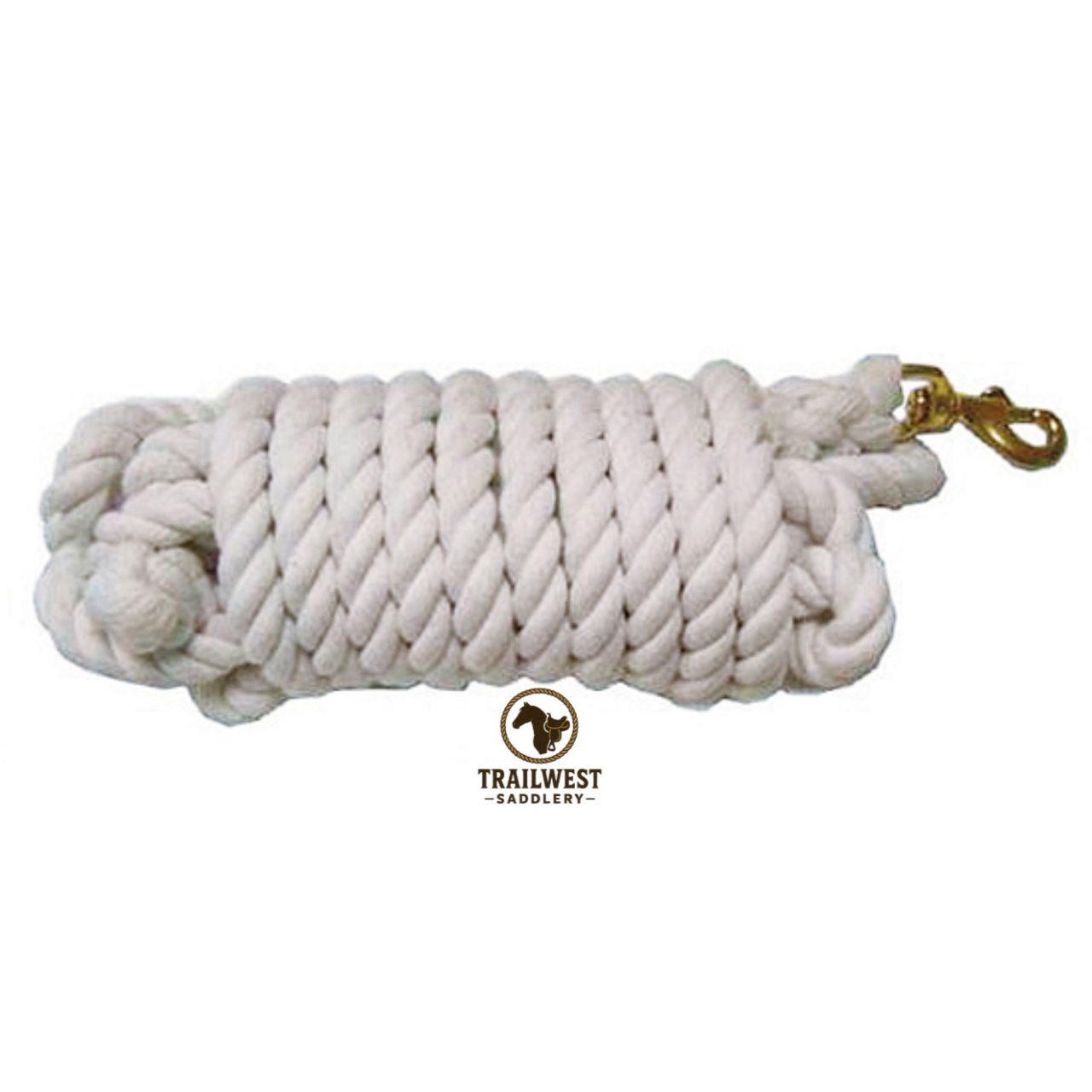 1/2″ Cotton Lunge Line. 25 foot length with a 1″ Brass Plated Bolt Snap, Extra Twist Cotton Rope – WHITE