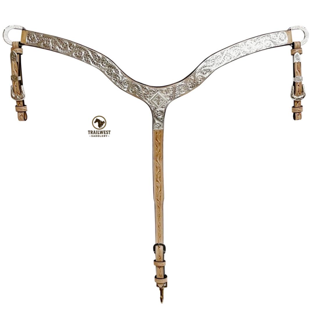 Harris breastcollars are hand-crafted with the finest quality materials and the same attention to detail you’ve come to trust and expect. Hand tooling, hand engraved sterling silver, and the finest stainless steel and brass hardware make our breastcollars the unrivaled choice to compliment your saddle.