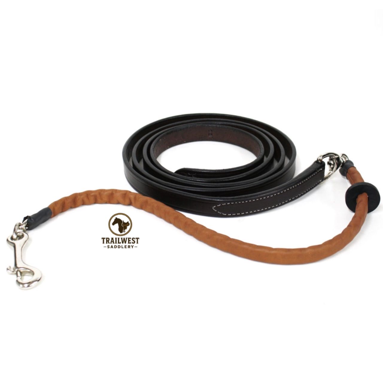 Our premium quality halter lead made of the same dark cherrywood leather as our world famous halters, now available with the AQHA approved lip chain (Safety Lead). The lead features a traditional halter chain that is covered in a soft, supple, calf skin leather. It features the same high quality nickel snap as our traditional leads along with one adjustable rubber stopper.